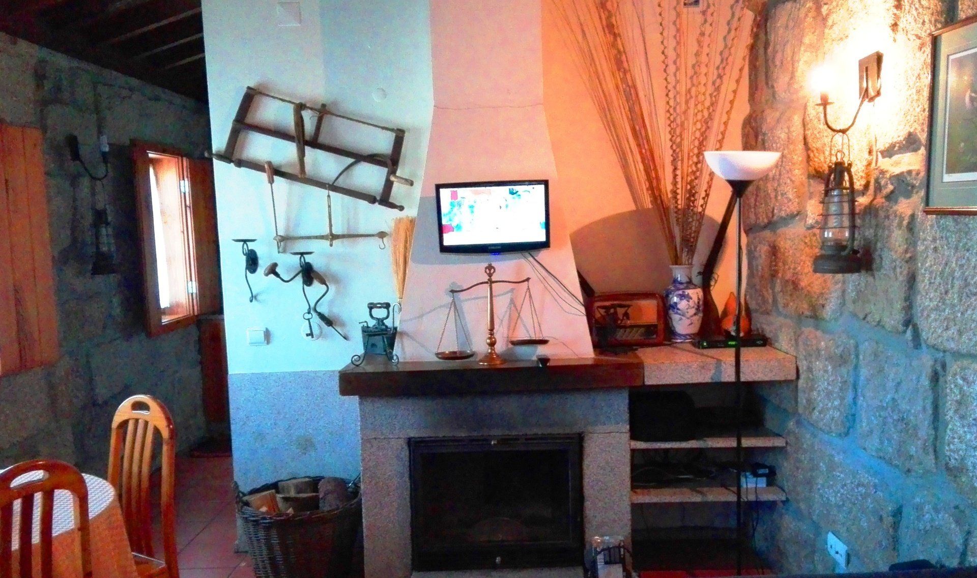Sala-quarto - cama de casal, sofá-cama, mazaninne com cama de casal, lareira, mesa e 4 cadeiras, TV, roupeiro, etc.