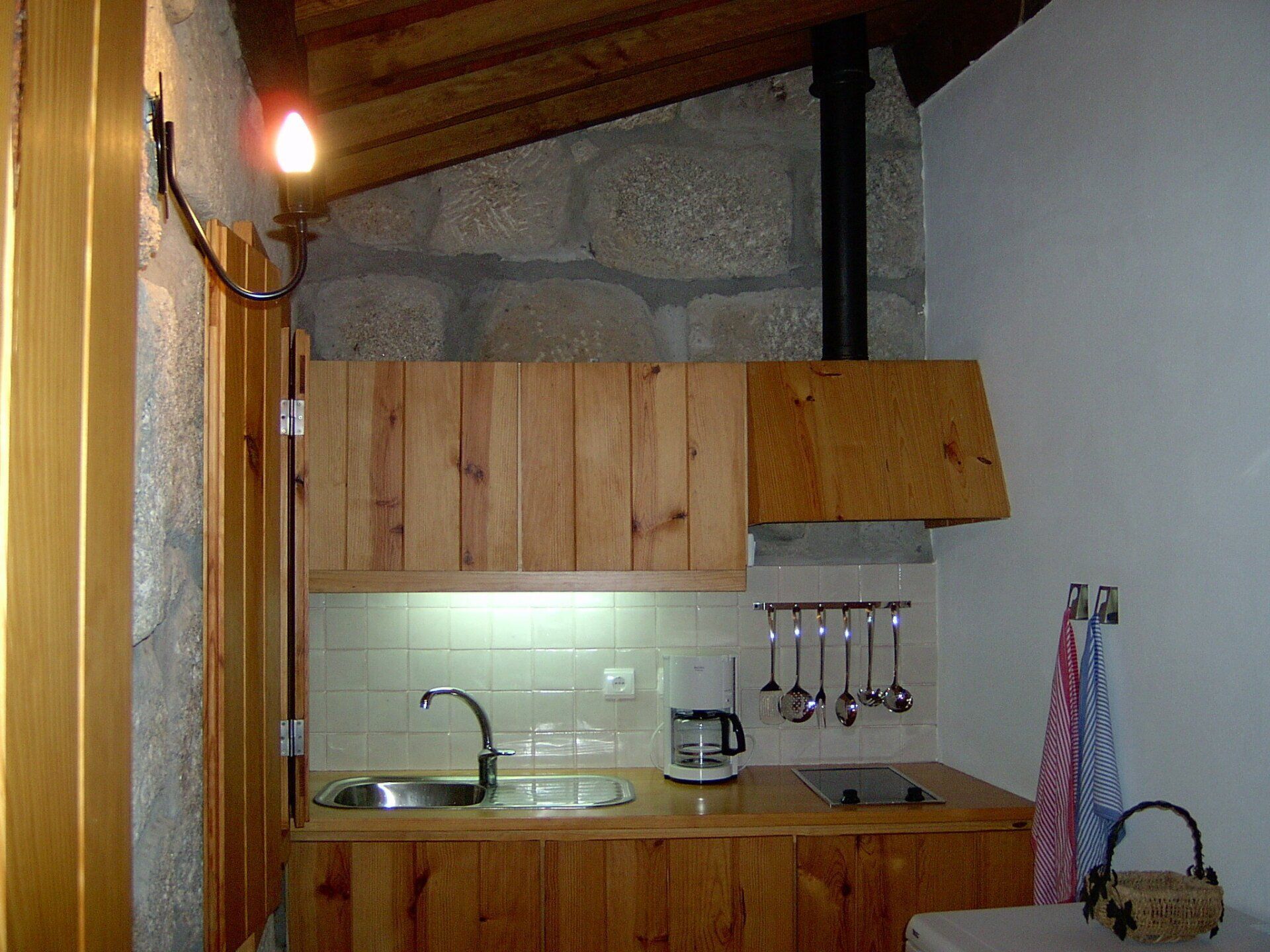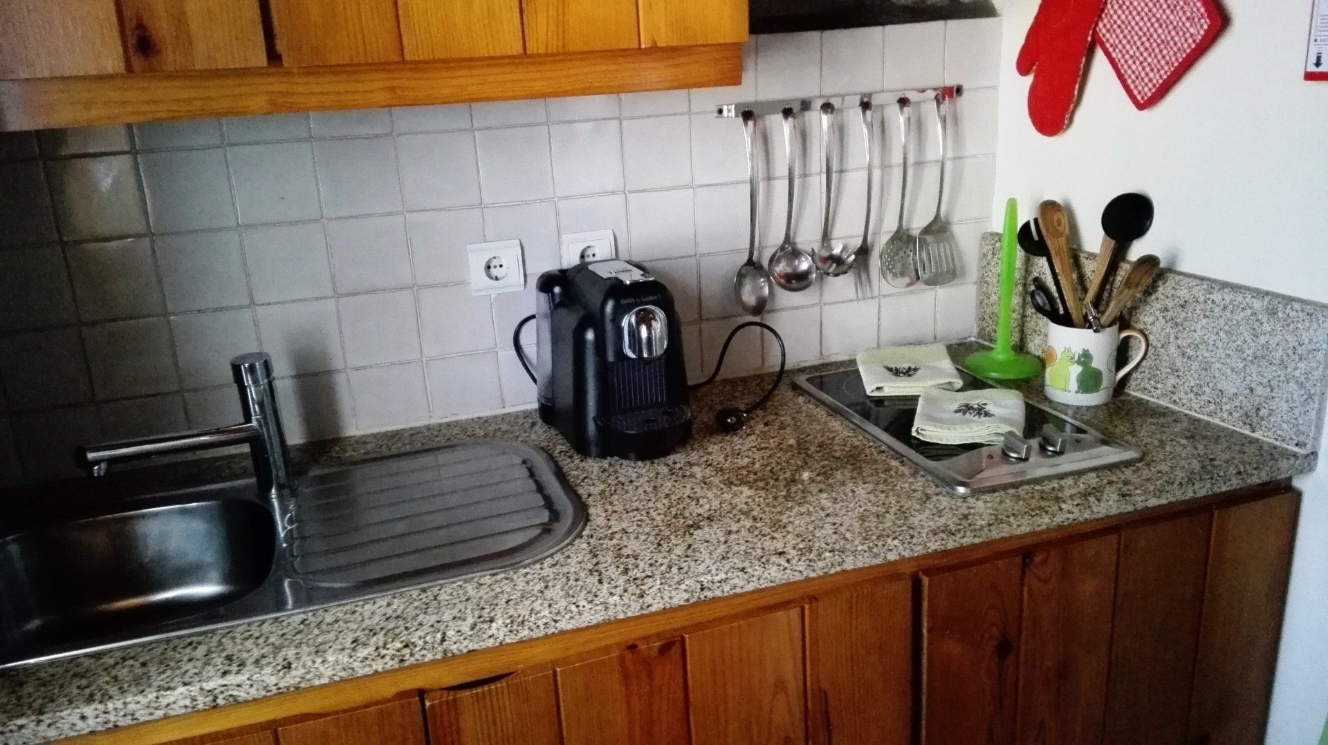 Cozinha - frigorífico, microondas, varinha, batedeira, maquina de café Delta (capsulas), louças, placa com dois bicos